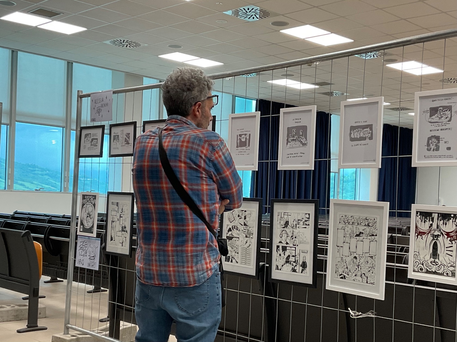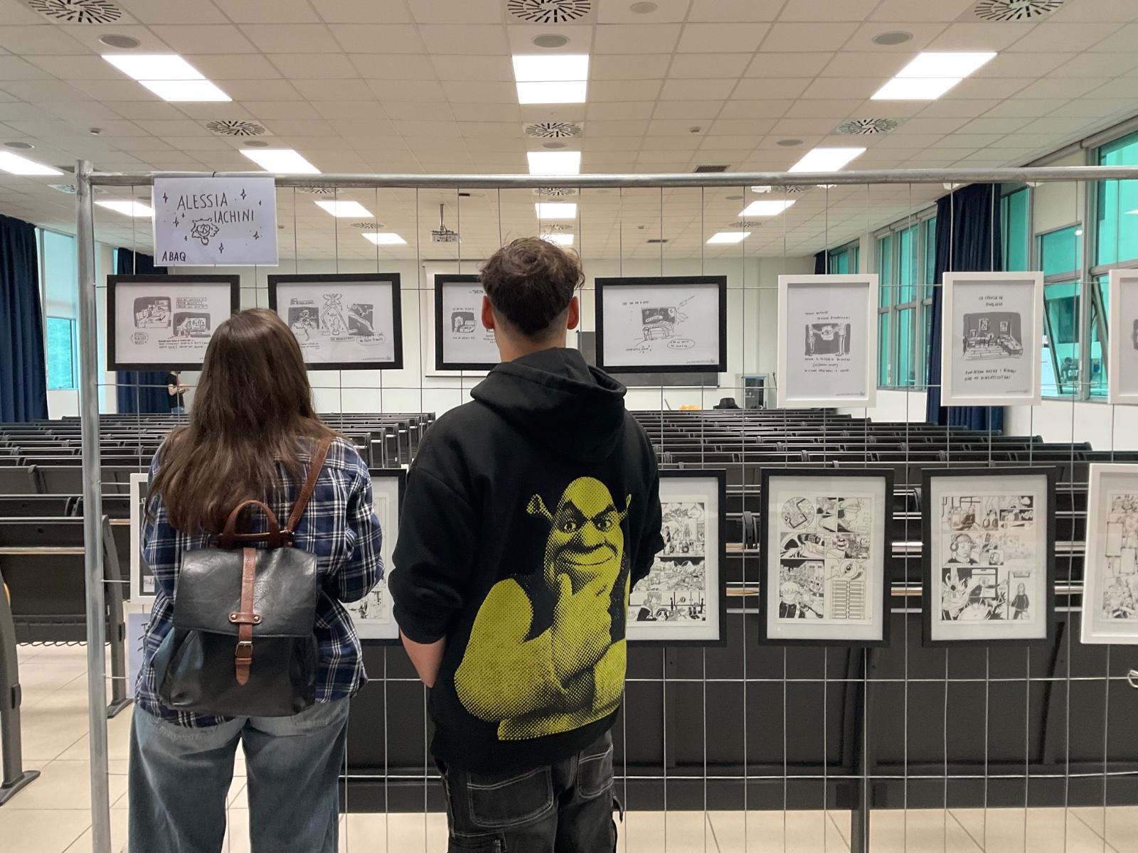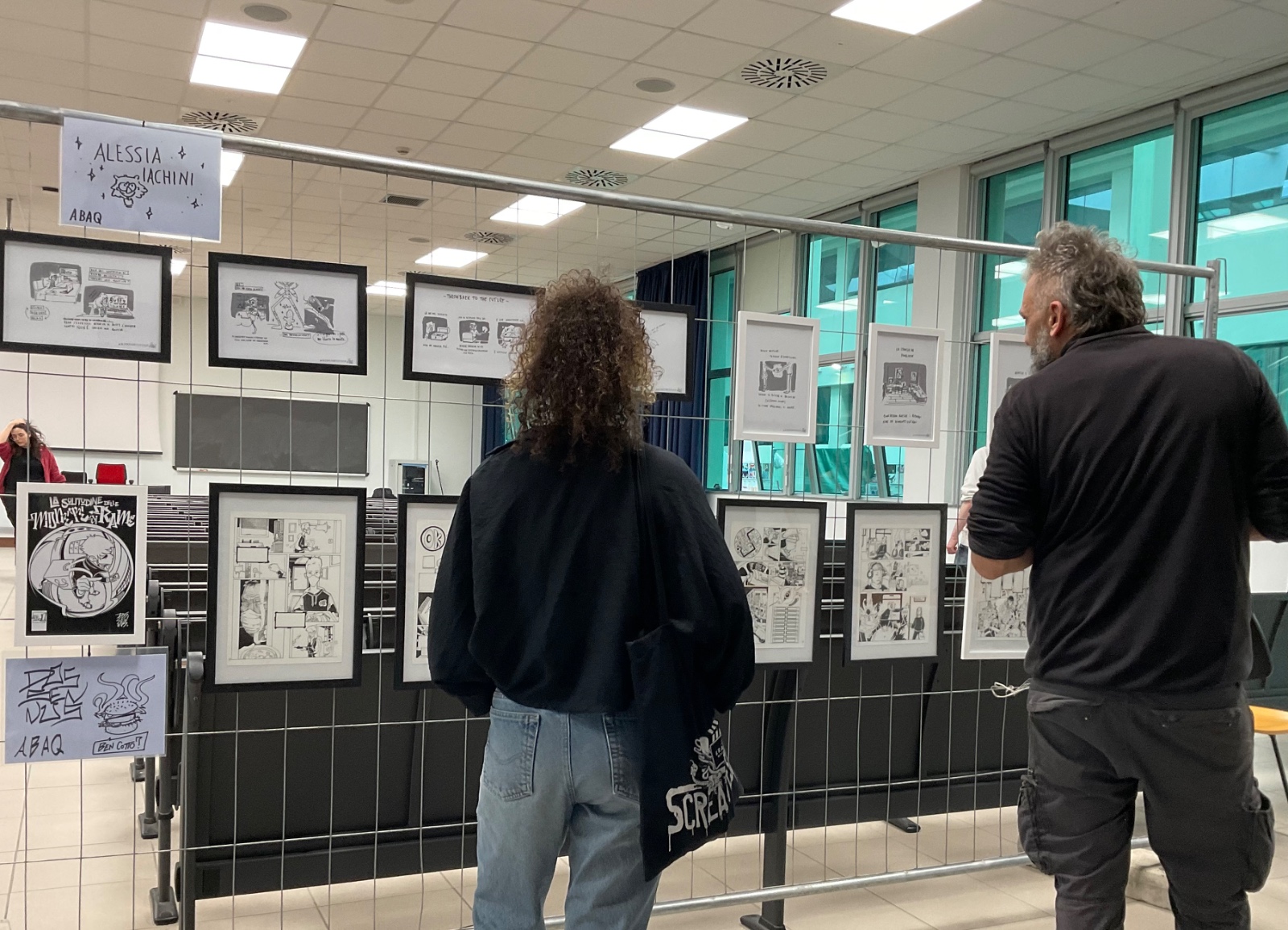 Attraverso un allestimento essenziale e diretto, il pubblico ha potuto confrontarsi con linguaggi grafici e narrativi eterogenei, capaci di raccontare l’identità giovanile contemporanea attraverso il fumetto. L’umorismo visivo e il tratto spigoloso dell’autore hanno dialogato con le ricerche visive e tematiche degli ex studenti, in un confronto tra stili, poetiche e visioni generazionali.